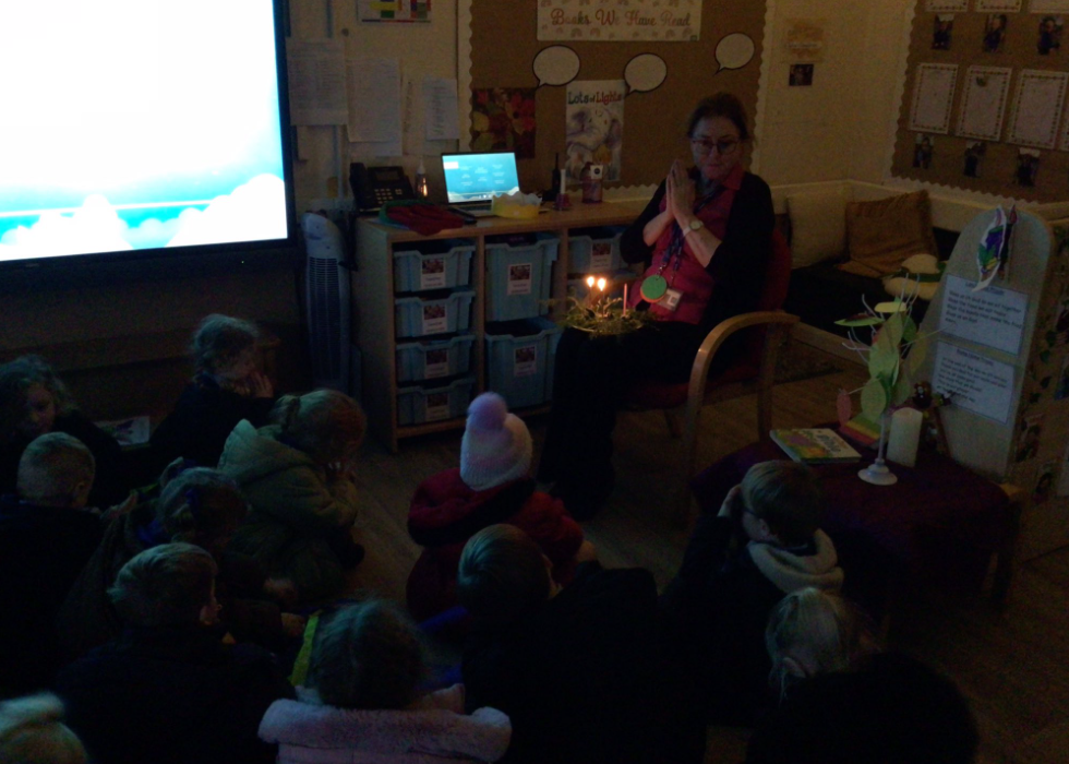 Mrs Evans joined Reception to light the second Advent candle, and together they discussed its meaning, focusing on its representation of peace.